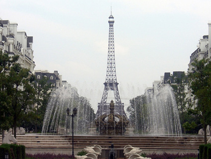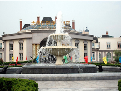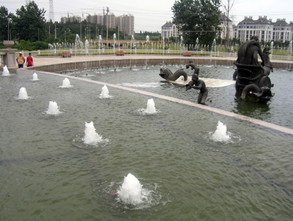 位于公園主入口區(qū),與天都城房產(chǎn)項(xiàng)目直接相聯(lián)接,疊泉廣場(chǎng)依山而建。是利用龍珠山原有的地勢(shì),通過(guò)人工的雕琢而成,建成后,泉水從最上面傾瀉而下,場(chǎng)面非常壯觀。山頂上,佇立在白色大拱門(mén)兩邊的,是塞納河女神與馬納河女神的雕像,她們就像兩位守護(hù)神,守護(hù)著這片青山綠水。