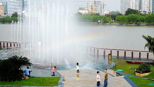 趣味噴泉也稱作游樂噴泉或戲水噴泉等,如:戲水踏泉、環(huán)型跳泉、追逐噴泉、跳舞噴泉、水上飛、疊泉、喊泉、 槍戰(zhàn)泉、水雷泉、水炮、子彈泉、彩虹飛渡、水霧噴、風水球等等,形式多種多樣,娛樂性極強,一般建在游樂園或公園。